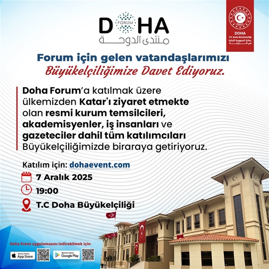 Doha Forum için gelen vatandaşlarımızı Büyükelçiliğimize davet ediyoruz